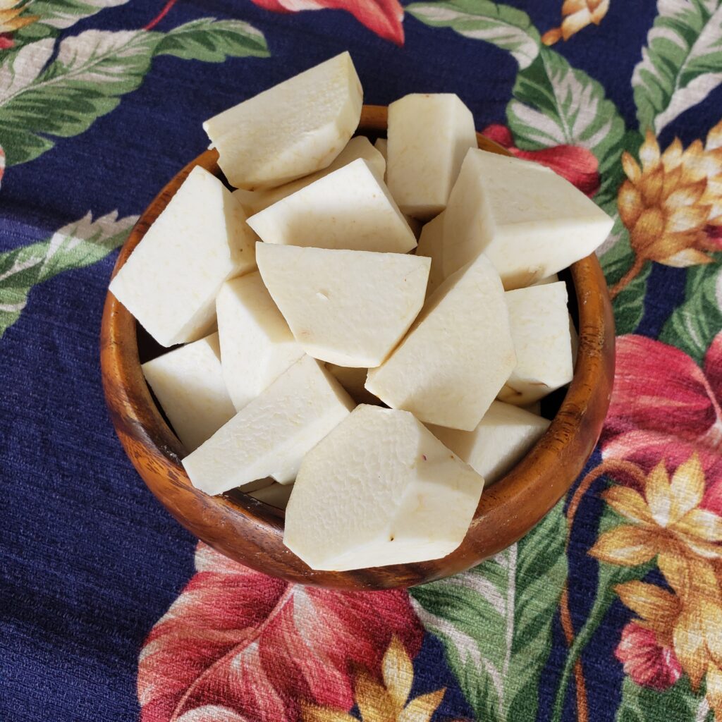 This is probably the simplest method of enjoying kalo at home. If you buy the kalo (taro) root whole, be sure to wash, peel, and chop it into chunks. Asian markets will sometimes sell them in cubes.